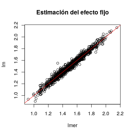 res <- as.data.frame(t(res))Las estimaciones de los efectos fijos son similares:
