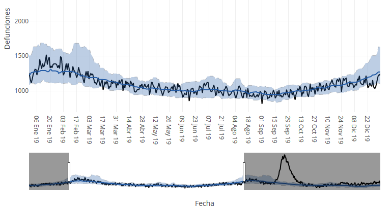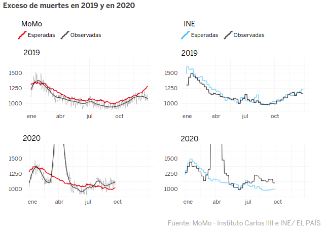 [Y aquí termina la corrección. Que merece la siguiente explicación: se habían colado en lo que se publica de MOMO unas presuntas estimaciones de la mortalidad esperada que no son las estimaciones de la mortalidad esperada que usa MOMO sino otra cosa horripilante; que, hay que hacer constar, en la fecha de publicación del artículo en El País ya habían sido corregidas en MOMO.]