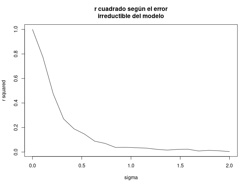 En primer lugar, genero varios conjuntos de datos con la misma estructura probabilística pero haciendo variar (crecer) el error irreductible, es decir, la $\sigma$ del error normal:
