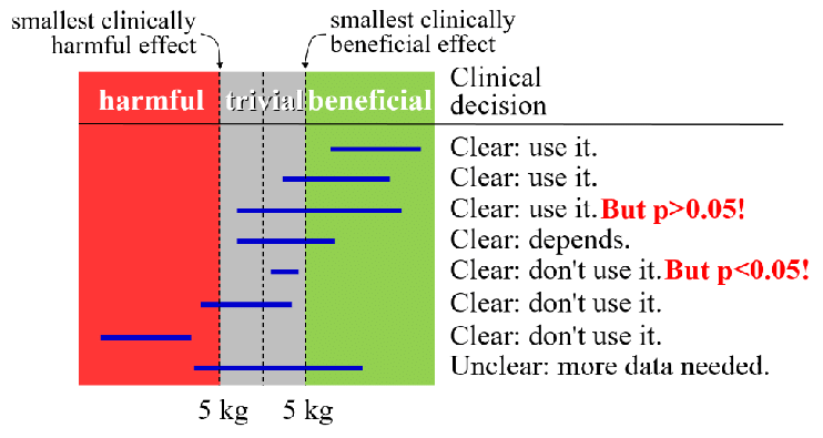 Este artículo (sobre si los estadísticos se autoaplican el mismo rigor metodológico a la hora de seleccionar herramientas de análisis que luego exigen a otros) me llevó a este otro artículo donde se menciona una técnica, la inferencia basada en magnitudes, MBI en lo que sigue, por sus siglas en inglés, de la que trata lo que sigue.
