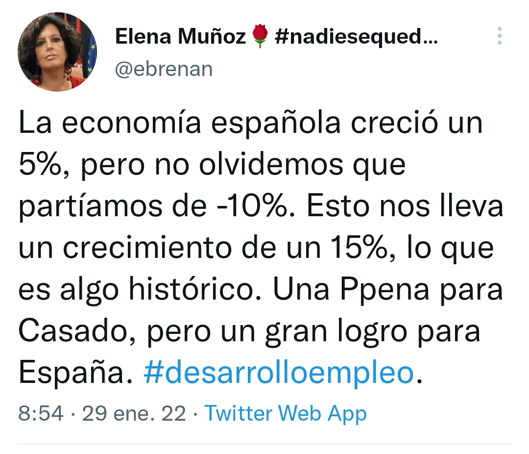 No puede hacérsele ninguna objeción gruesa. Si acaso, de ponernos muy, muy estrictos, que no muestra el PIB —que es lo que anuncia— sino su variación interanual. Pecado venial en tanto que el uso de porcentajes no deja lugar a dudas y que al hablar del PIB uno suele referirse casi siempre tasas de variación interanuales (más ténicamente: el PIB está casi universalmente operativizado a través de las variaciones interanuales).