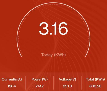 El Power(W) es la primera integral, la potencia real consumida en mi hogar. Las otras dos, son las conocidas como $I_{rms}$ y $V_{rms}$ —Current(mA) y Voltage(V) en la app— donde rms significa lo mismo que siempre: root mean square.