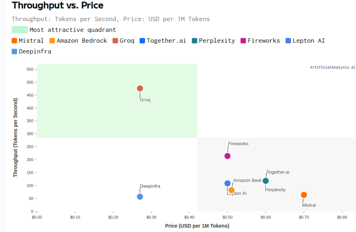 (Son los precios a día de hoy de los distintos proveedores de servicios de inferencia para Mixtral tal como los recoge Artificial Analysis hoy aquí.)