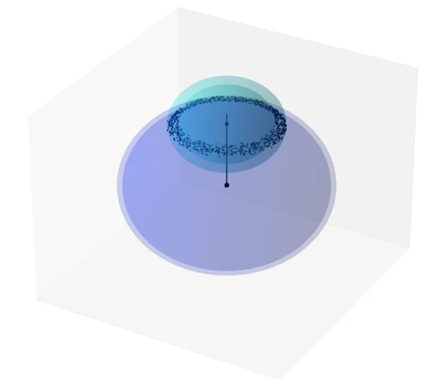 Aparentemente, los embeddings de los tokens básicos de GPT-X están ubicados en una región del espacio (de dimensión 4096, no 3) con más o menos la siguiente forma: