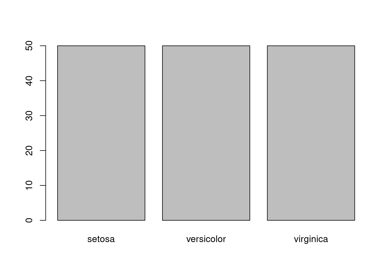 Por ejemplo, la expresión siguiente muestra cómo en iris existe el mismo número de observaciones de cada especie: