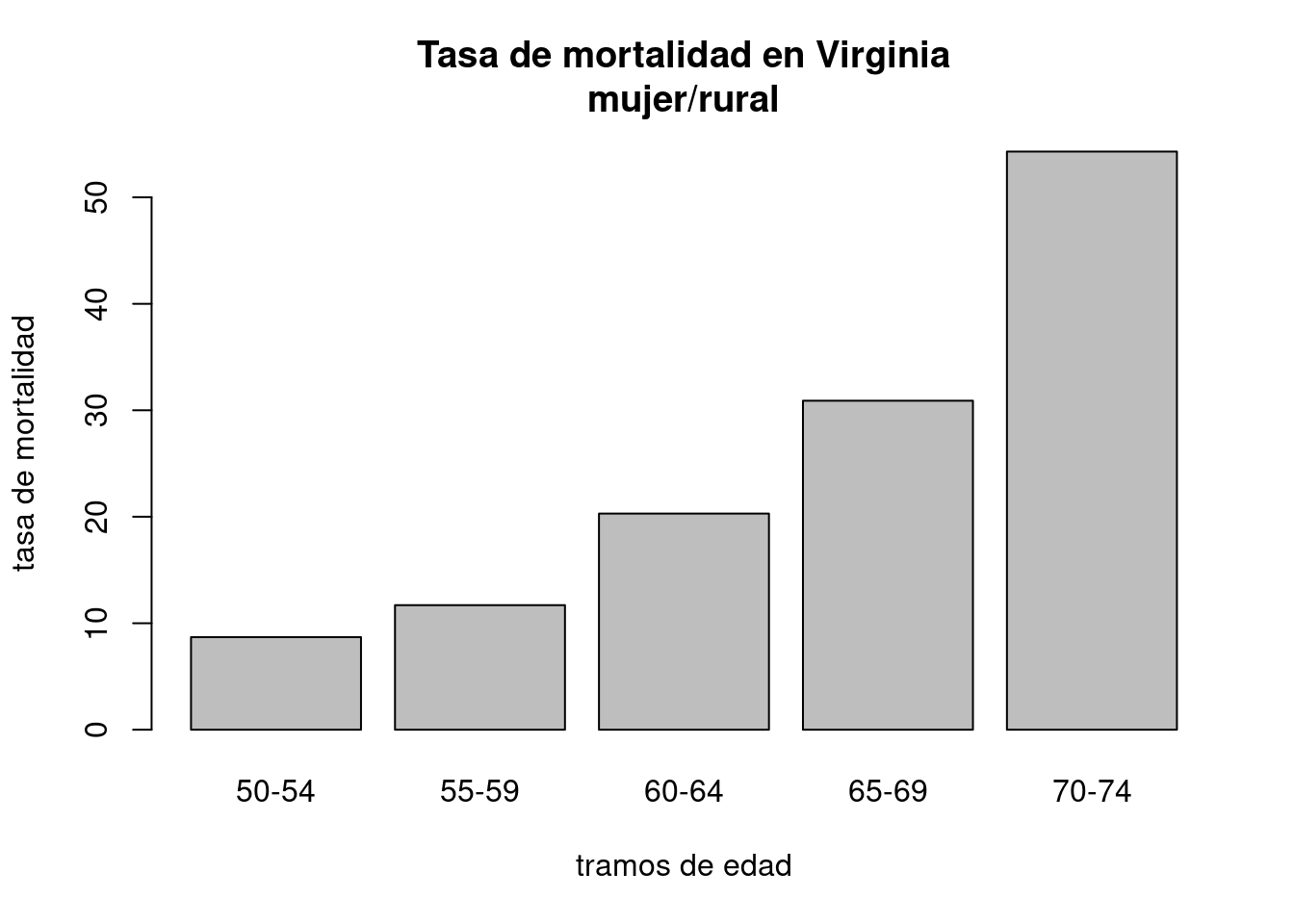 main = "Tasa de mortalidad en Virginia\nmujer/rural")