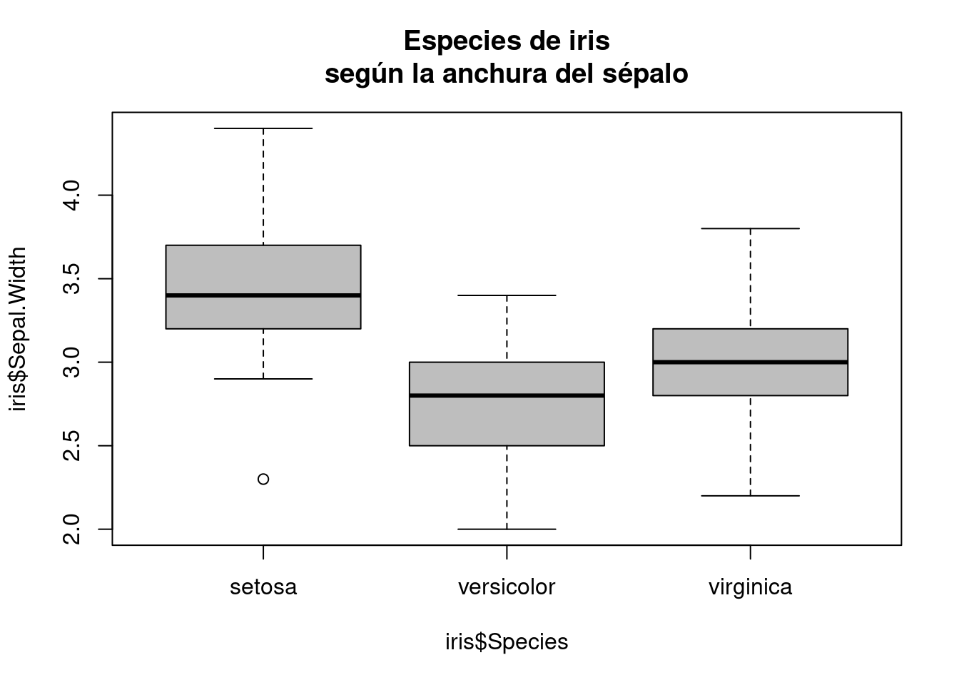 main = "Especies de iris\nsegún la anchura del sépalo")
