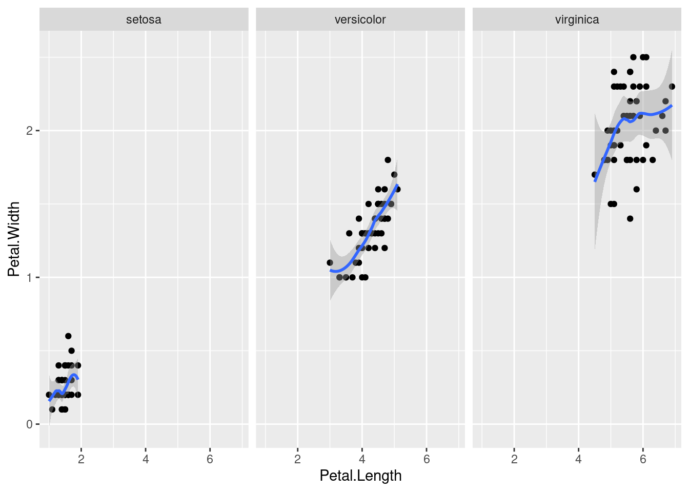 ggplot(iris, aes(x = Petal.Length, y = Petal.Width)) +