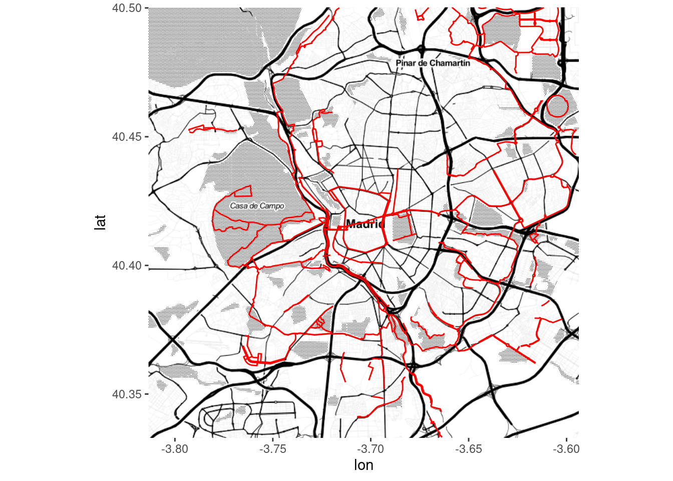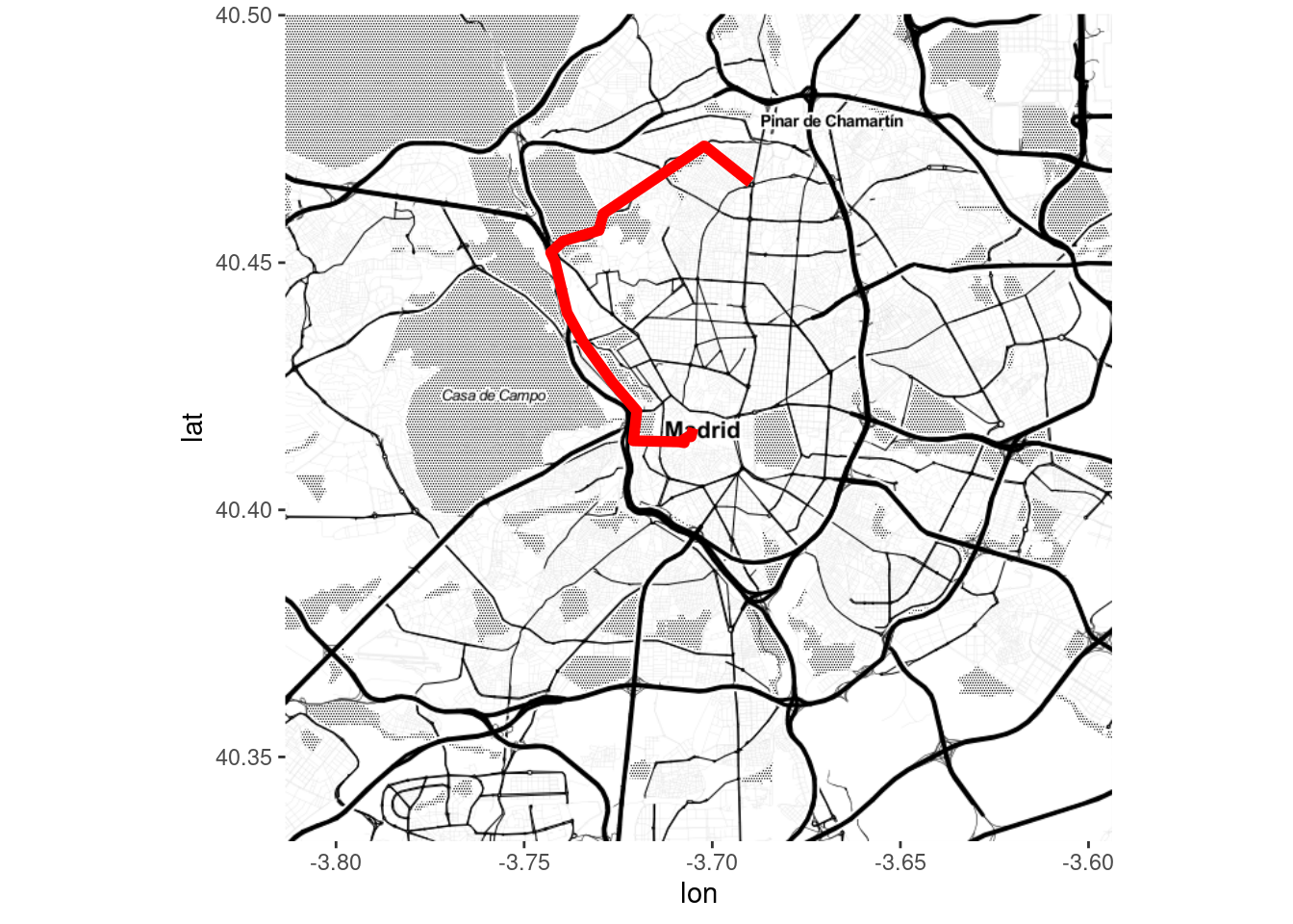 ruta <- route(from = "Puerta del Sol, Madrid", to = "Plaza de Castilla, Madrid")
