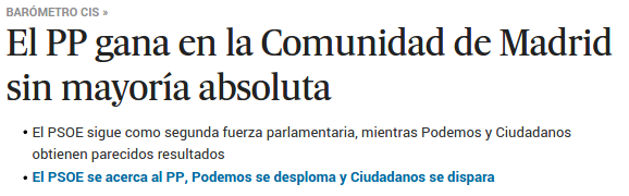 en el que se da noticia de los resultados de una encuesta (el barómetro del CIS). Porque una cosa es que un partido gane las elecciones y otra que las ganaría si se diesen una serie de circunstancias: entre otras, la fundamental, que las hubiera (el resto tienen que ver con la incertidumbre asociada a las encuestas, etc.).